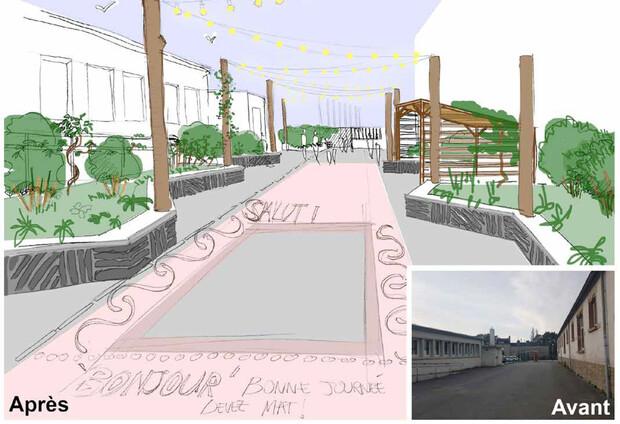 à partir de septembre, la réorganisation et l’aménagement de la cour se fera petit à petit, avec les équipes enseignantes et les élèves, mais aussi les familles, sur un mode participatif. Ont été et seront associés à la réflexion : enseignants de l’établissement, familles (parents et élèves), personnel des écoles (ATSEM, animateurs, équipes de restauration) et élus.