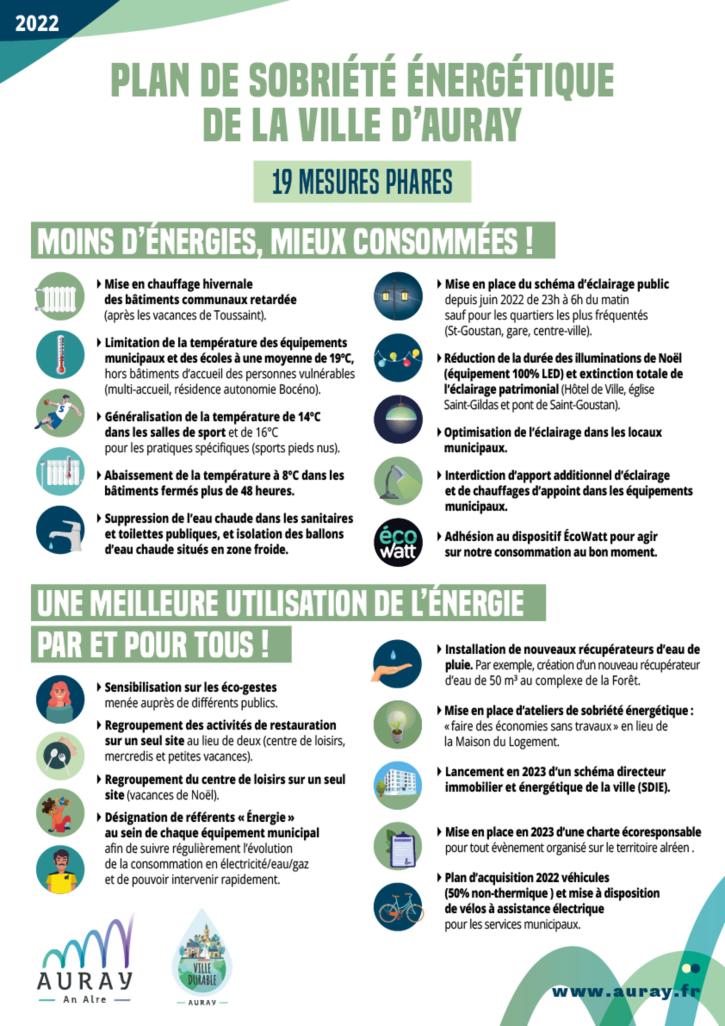Pour ce faire, la Ville adopte, dès cet hiver, un vaste plan de sobriété énergétique, constitué de 19 mesures phares pour diminuer sa consommation en énergies (chauffage, électricité, eau).